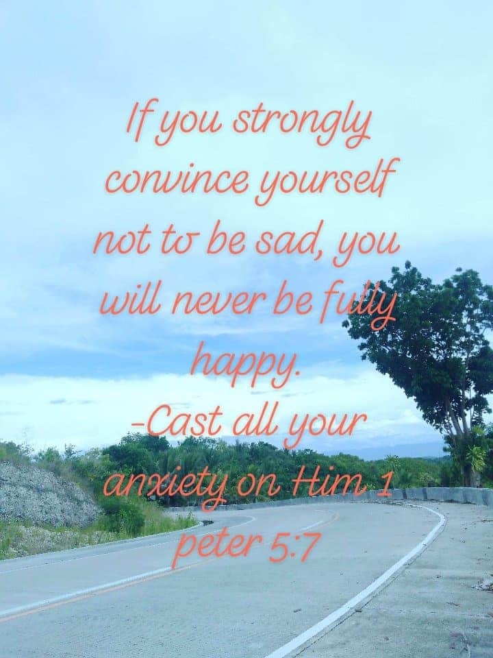 If you strongly convince yourself not to be sad, you will never be fully happy. Cry yourself out. And cast all your anxiety to him ☝️ 1 peter 5:7