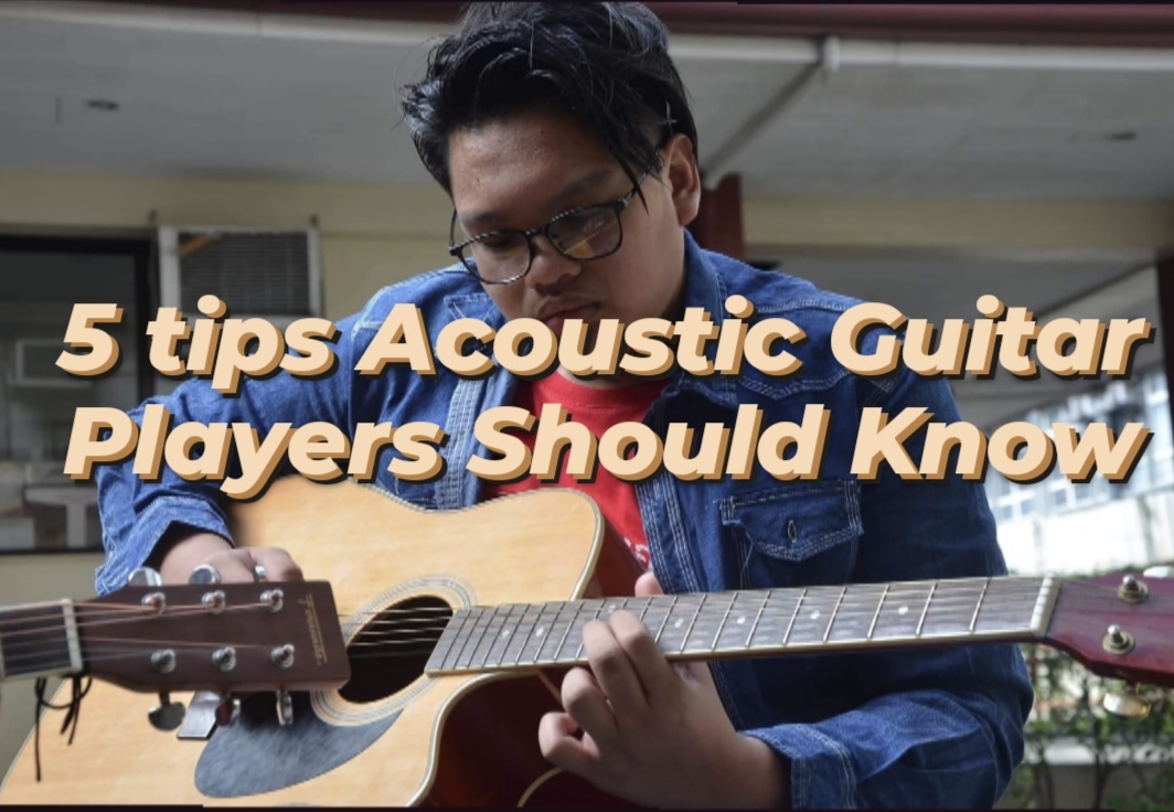 Hi, I am Pat and today I'm to show you 5 tips Acoustic Guitar Players Should Know. This tips will help you to be a better Acoustic Guitar Player. Tip #1: Stretch and Warm-up your Hands and Fingers before playing the guitar - this will help your Hands and Fingers to be flexible. Flexible fingers are required in strumming especially when you want to pluck or Fingerstyle. Tip#2: Cut your fingernails - i know this sounds weird but cutting your fingernails before playing the guitar actually helps. According to Angad Trehan, " If you have got long nails, you will not be able to hold the fretboard and in turn the strings properly. This will lead you to play wrong notes and further lead you to hold wrong chord shapes." I suggest that you cut your fingernails on your pressing hand and keep your fingernails long in your strumming hand. Tip#3: Relax your hands - the more relaxed your hands are, the more you're going to get the right note. Practice a lot and you will gain the so called muscle memories. Tip#4: Buy the best guitar strings - having a good string will help you a lot. Few modifications to your guitar can help you to be better. Some strings are so bad that they rust so easily. A good quality strings are durable and can last longer than a average guitar strings. Tip#5: keep your strings close to the fretboard as possible - you can smoothen and flatten your guitar saddle. Guitar saddle is located located in the guitar bridge. By doing this using a sand paper, you can level the strings close to the fretboard. It can help your fingers to press the strings easily and still get the right note. The closer the strings, the better you can play the guitar. That's all I hope you can play the guitar nicely and I hope that this tips help you. You can check my video and see how this tips helped me.