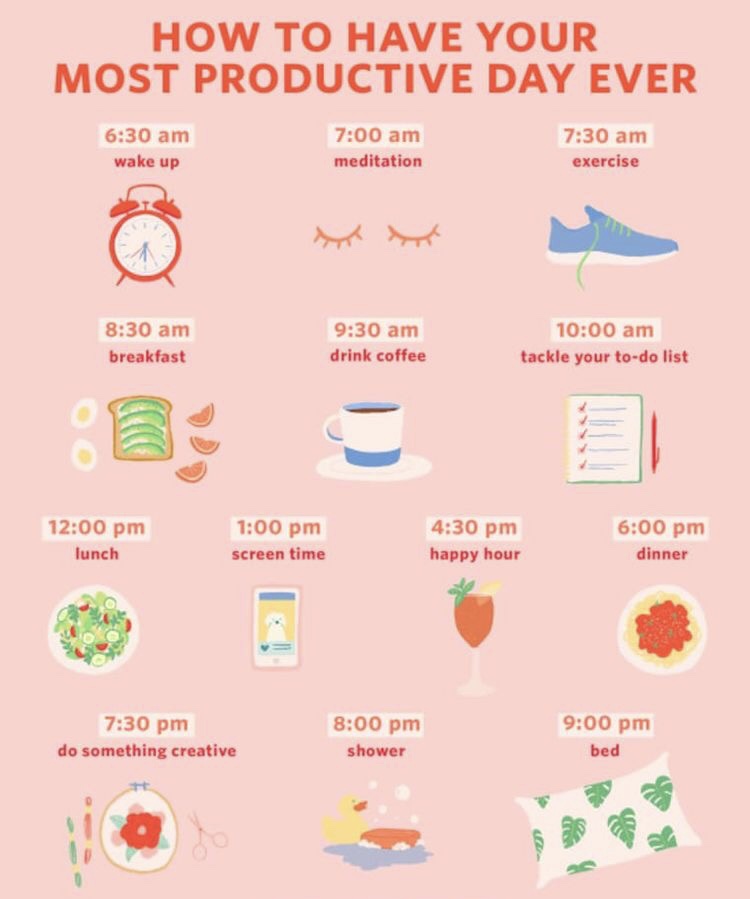 There’s no such thing as a perfect, one-size-fits-all routine. Everyone’s peak productivity hours vary based on their individual circadian rhythm and personality. For example, if you’re a night owl, it may not be a good idea to wake up at 4 a.m. daily just because your favorite entrepreneur swears by. Still, (according to science) some time-frames are better than others for your everyday activities.