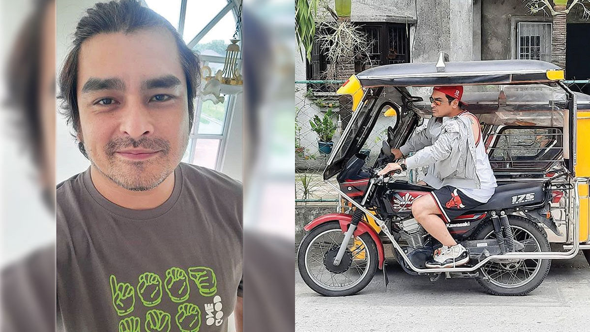 #MYFIRSTJOB This is what Eric Frutuoso, known as a member of the Gwapings in the 1990s. He posted on Instagram this past week a photo himself driving a tricycle said "Times like these hindi pwedeng kaatehan ang paaralin! Basta ligal a pagkakatiaan para sa mga anak, trahin lang ng tirahin" this past week a photo himself driving a tricycle.