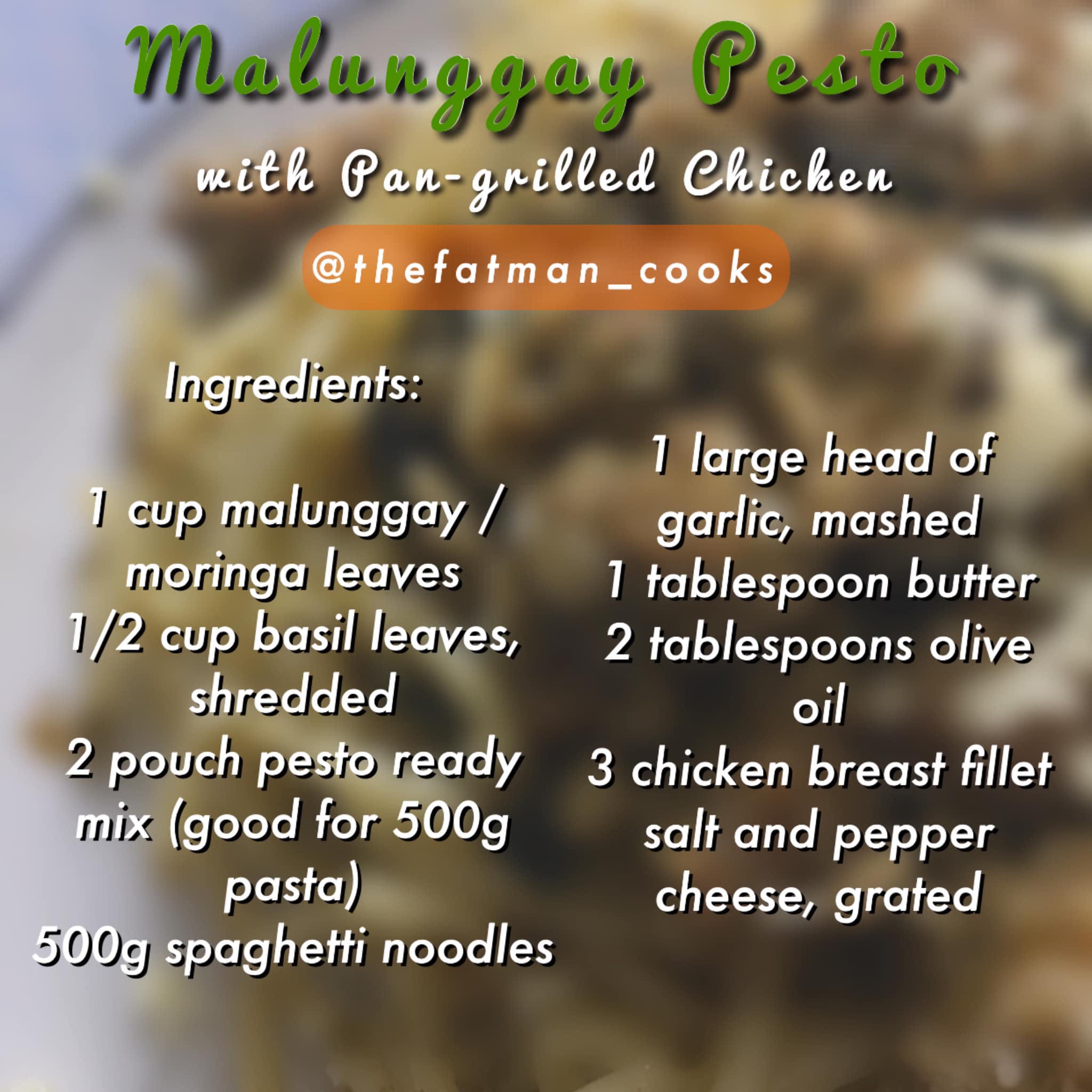 Oh how I love pesto! <3 I mean, who doesn't right? I came up with this recipe because we had a lot of malunggay / moringa leaves that day. I was thinking of making a classic pesto but didn't have enough my basil leaves. So I thought of adding this wonderful ingredient to the mix to make my pesto healthier. I was so happy that It went well with the pesto taste and did not affect the flavor at all. Try this very easy recipe at home most especially if you are cooking for a lactating mom. A win-win dish for all. :-) ***Stay happy and nice.*** #thefatmanrecipes