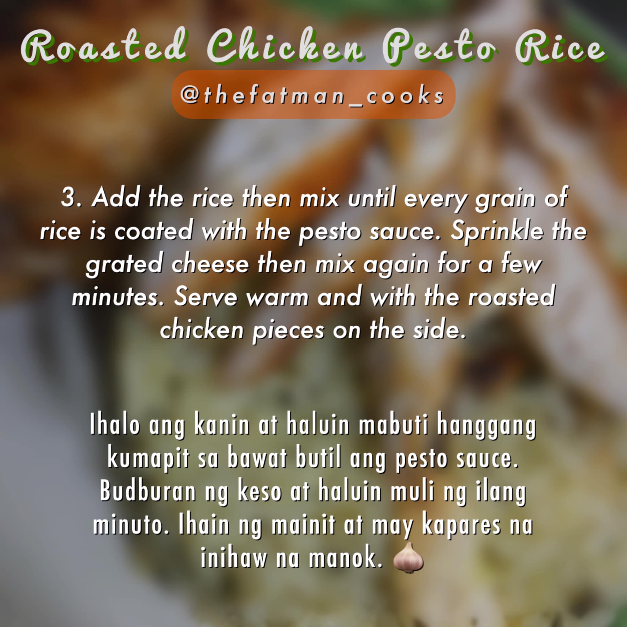 If you are not a fan of pasta dishes why not try pesto on rice? ;-) Of course we love eating rice everyday. But the problem is, after eating pasta we don't have room for rice anymore...or vice versa. What if we try and fuse them? If you have leftover pesto sauce or it just happens to be always available in your pantry (lucky you!), then you have to try this recipe. Let me know what you think about my recipes in the comments. If you did try to cook any of these, thank you and I hope you had a good time cooking and eating it. :-) ***Stay happy and kind.*** #thefatmanrecipes