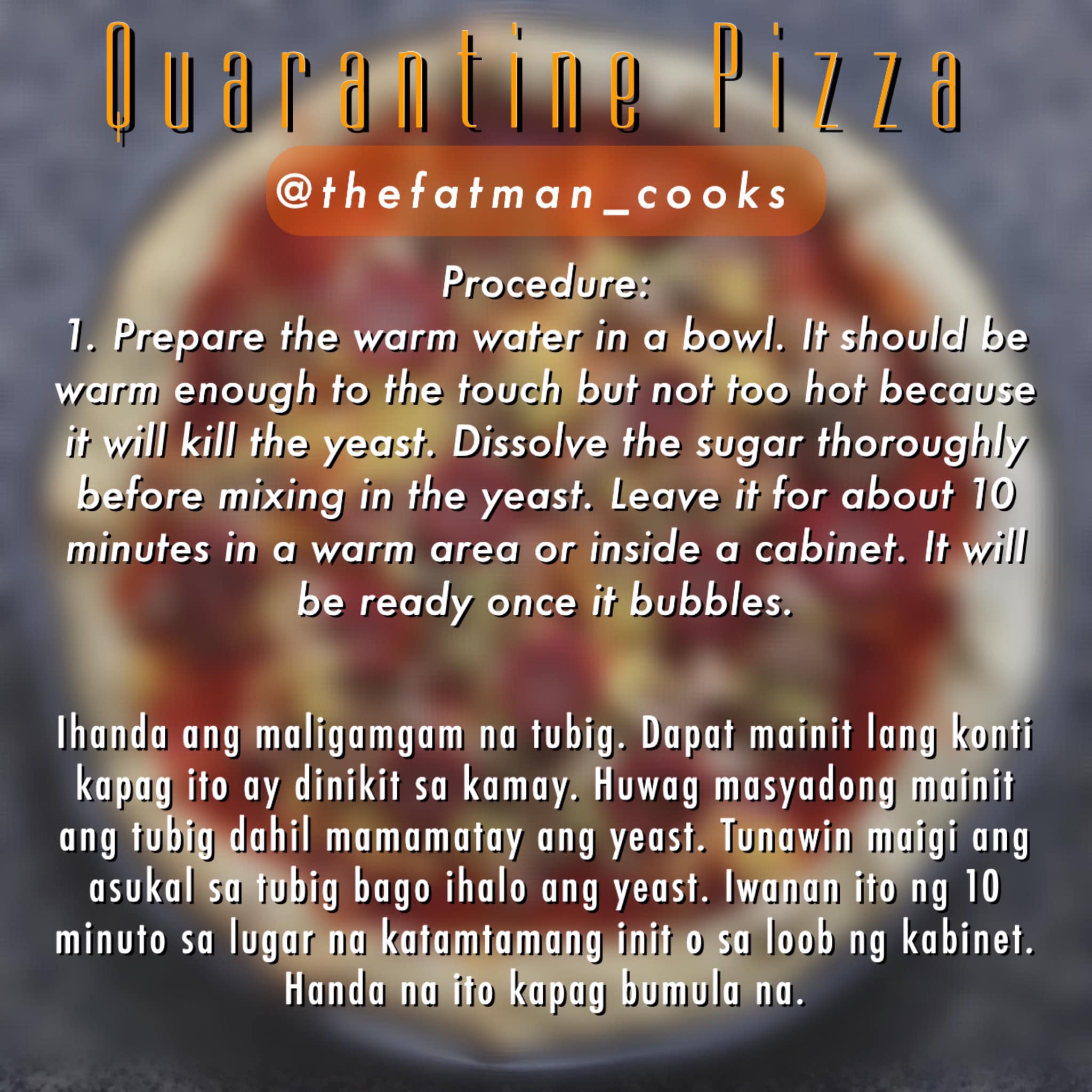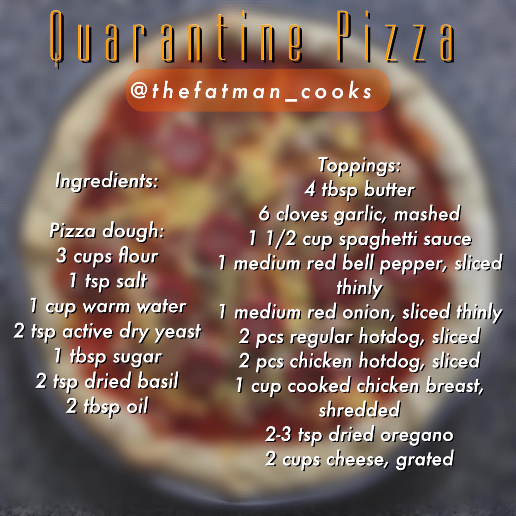 Ever had that craving on a very inconvenient hour? Well, try having it while on lock down. The tiny good side to what is happening lately is our unending fountain of resources either for food or finances. Although, the quarantine stuff is getting less strict, it is still hard to have that tummy growling late at night. I came up with this pizza during the toughest months of the ECQ with just a few ingredients in the cabinet. Remember, you don't need to be on lock down to make this easy recipe. Give it a try. :) ***Stay happy and kind.*** #thefatmanrecipes