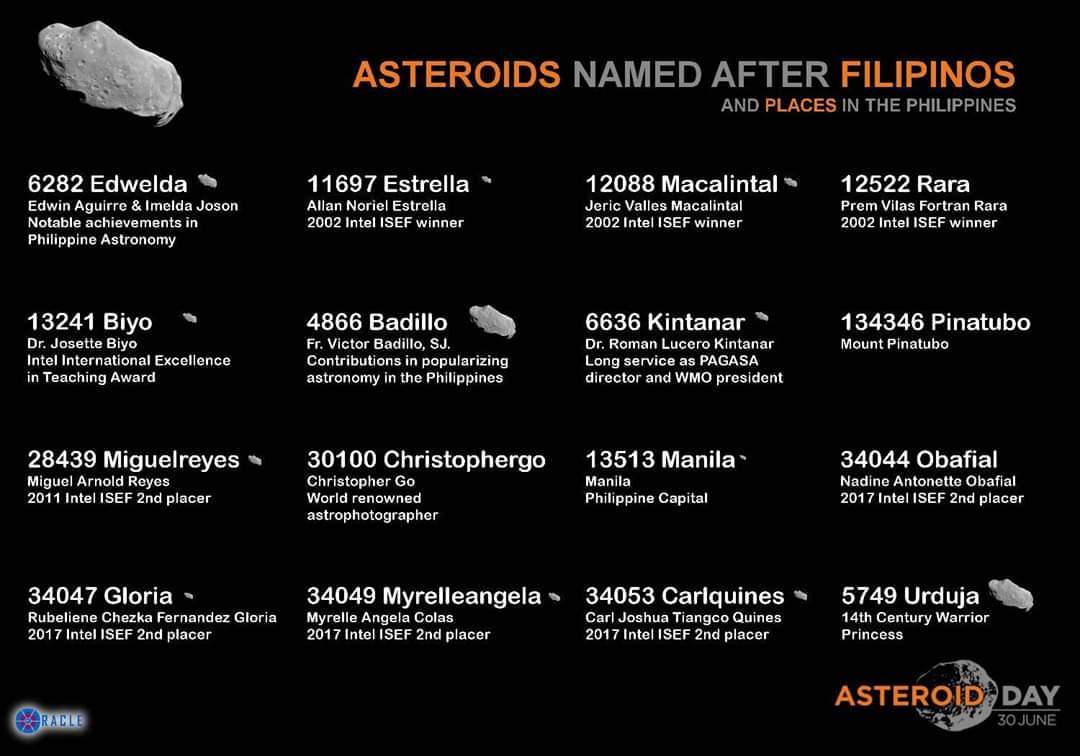 Filipino pride in space! Here are a few asteroids named after Filipinos to brighten up your day and add interest to your science loving hearts!
