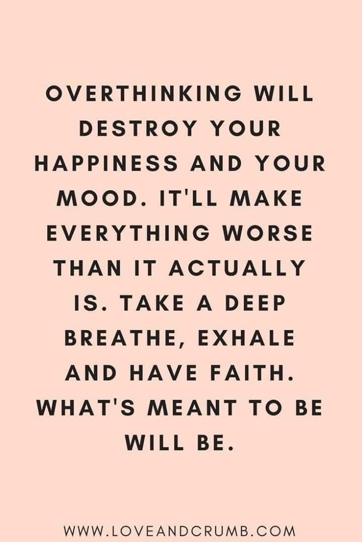 Overthinking is not always a good thing so stop and think about the present and let things happen what they're supposed to doš