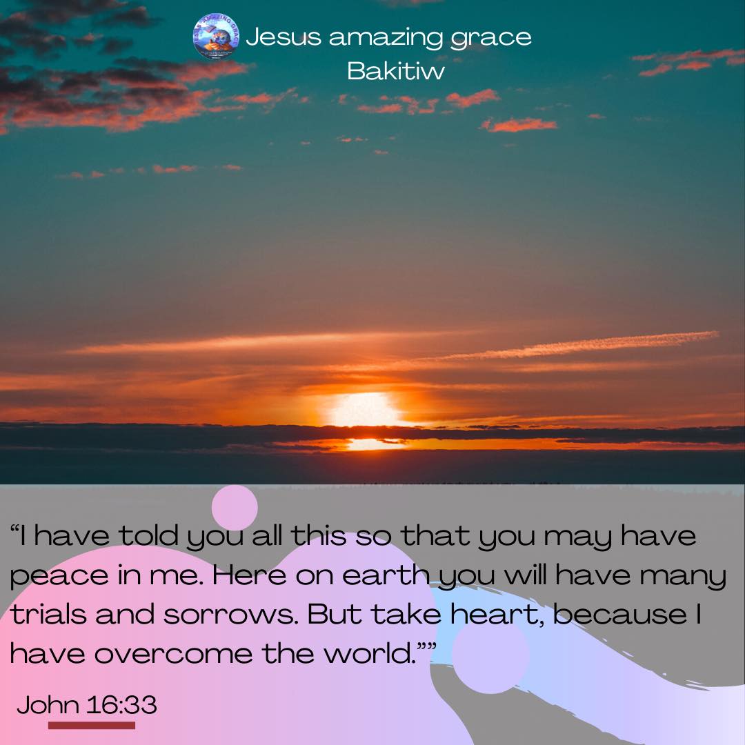 John 16:33 NLT “I have told you all this so that you may have peace in me. Here on earth you will have many trials and sorrows. But take heart, because I have overcome the world.”” #ShareTheRealGoodNews
