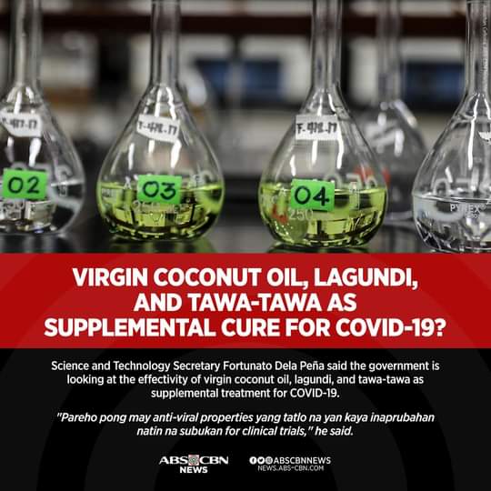 Hindi binabalewala ng gobyerno ang herbal medicine sa laban kontra #COVID19 at kabilang sa pinag-aaralan ng Department of Science and Technology ang virgin coconut oil, lagundi, at tawa-tawa.