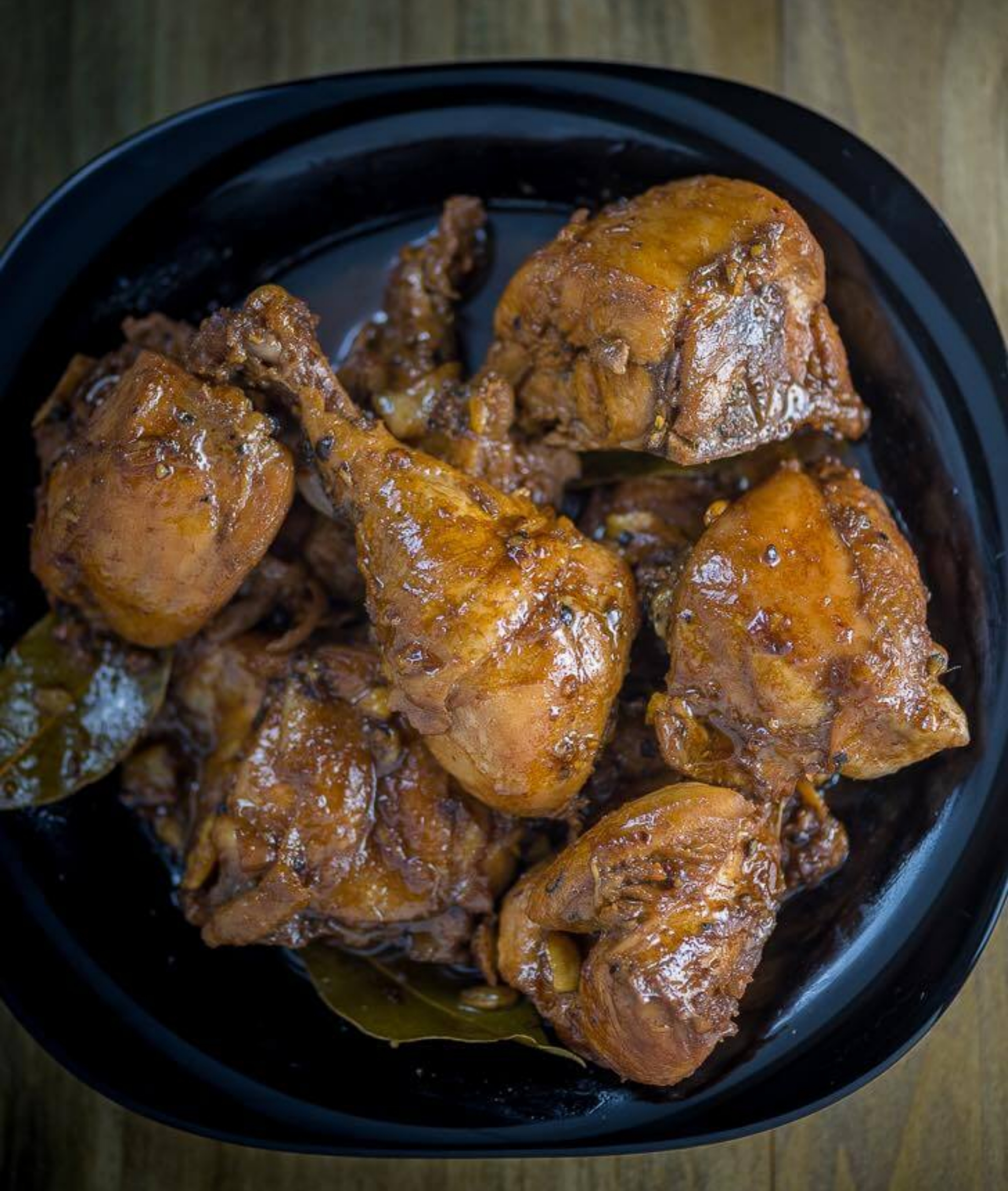 Philippine adobo (from Spanish adobar: "marinade," "sauce" or "seasoning") is a popular Filipino dish and cooking process in Philippine cuisine that involves meat, seafood, or vegetables marinated in vinegar, soy sauce, garlic, and black peppercorns, which is browned in oil, and simmered in the marinade. It has occasionally been considered the unofficial national dish in the Philippines. Cooking Procedures : 1. In a saucepan, put pork, vinegar, 1 tbsp. garlic, bay leaf, soy sauce, salt and pepper. 2. Bring to a boil then simmer uncovered until pork is tender. If it dries up then add water. 3. Remove meat from sauce. 4. In a skillet, heat oil then sauté remaining garlic. 5. Add meat and fry until light brown. Add back the sauce. 6. Remove from heat and serve. Ingredients: 2 lbs chicken cut into serving pieces 3 pieces dried bay leaves 8 tablespoons soy sauce 4 tablespoons white vinegar 5 cloves garlic crushed 1 1/2 cups water 3 tablespoons cooking oil 1 teaspoon sugar 1/4 teaspoon salt optional 1 teaspoon whole peppercorn