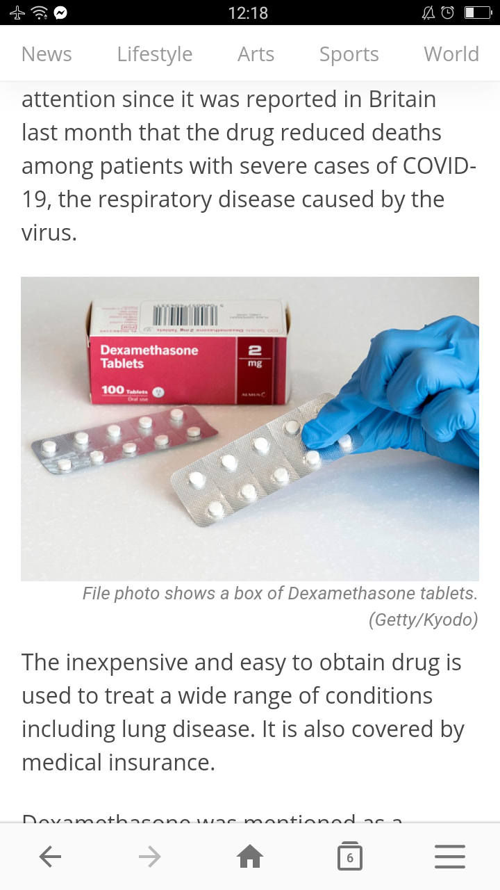 Japan's health ministry has approved the use of the steroid drug dexamethasone for the treatment of novel coronavirus patients, following the approval of remdesivir in May, it came to light on Tuesday. Dexamethasone has drawn international attention since it was reported in Britain last month that the drug reduced deaths among patients with severe cases of COVID-19, the respiratory disease caused by the virus. The inexpensive and easy to obtain drug is used to treat a wide range of conditions including lung disease. It is also covered by medical insurance. Dexamethasone was mentioned as a government approved drug in a revised version of a Ministry of Health, Labor and Welfare handbook for treating COVID-19 patients. The handbook, revised Friday, cited the inclusion of the drug in a study by the University of Oxford and revised guidelines for treating COVID-19 patients by the National Institutes of Health of the United States. Comparing around 2,100 patients who were administered with the drug for 10 days and 4,300 patients who were not, a University of Oxford team said in June that the drug reduced deaths by a third among ventilated patients and by a fifth among patients receiving oxygen only. However, the death rate did not change for patients who did not require respiratory support, it said. Taking into account the results of the Oxford study, the NIH revised its guidelines to recommend that the drug be administered to ventilated patients and those requiring oxygen injection. The World Health Organization said the drug "can be lifesaving for patients who are critically ill with COVID-19."