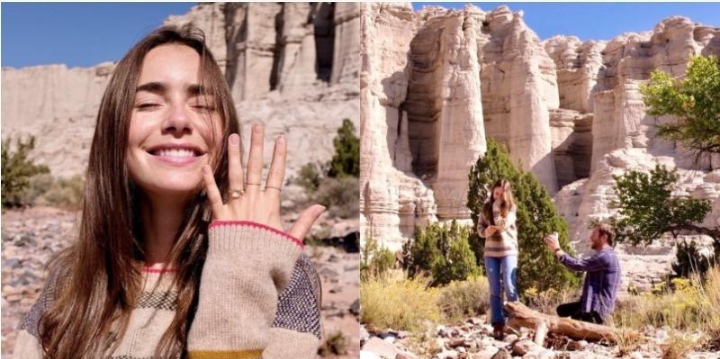 Lily Collins is now engaged to film director Charlie McDowell! The actress shared the happy news on Instagram, proudly flashing her gorgeous ring and sharing photos of the proposal. "The purest joy I’ve ever felt," she said in a post. "I’ve been waiting my lifetime for you and I can’t wait to spend our lifetime together," she added. Charlie also shared a sweet message for Lily on his Instagram. "In a time of uncertainty and darkness you have illuminated my life. I will forever cherish my adventure with you," he said. The couple confirmed their relationship last year, when they posted photos of them together in Paris, France. Lily is known for her roles in "Love, Rosie" (2014) and "The Mortal Instruments: City of Bones" (2013). She also recently starred in "Inheritance" (2020) and "Tolkien" (2019).
