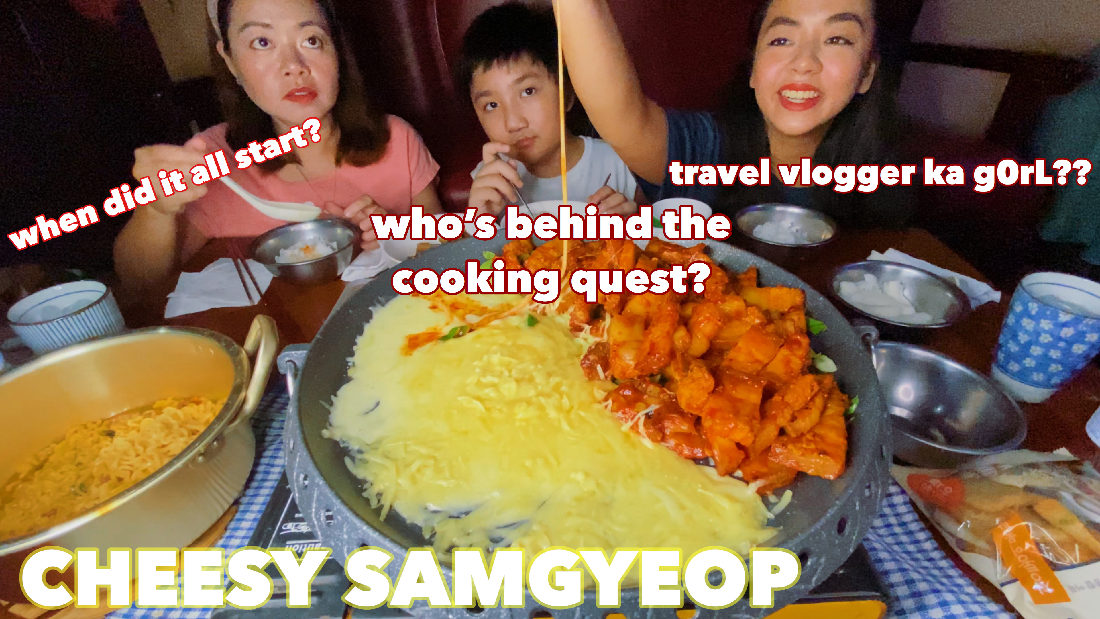 Hi, welcome to another mukbang episode. In this video, we're gonna show how to make your samgyeopsal extra cheesy. You guys wanna know where we learned it? Start watching this video. Also, it has been really years since we started this channel. And we know we haven't properly introduced ourselves, so finally here it is. There are also a lot of throwback clips when we're still in the stage of purely beginner vlogger and traveller. We will explain our individual roles in this channel. As well as our goals for this community. I hope you enjoy this!