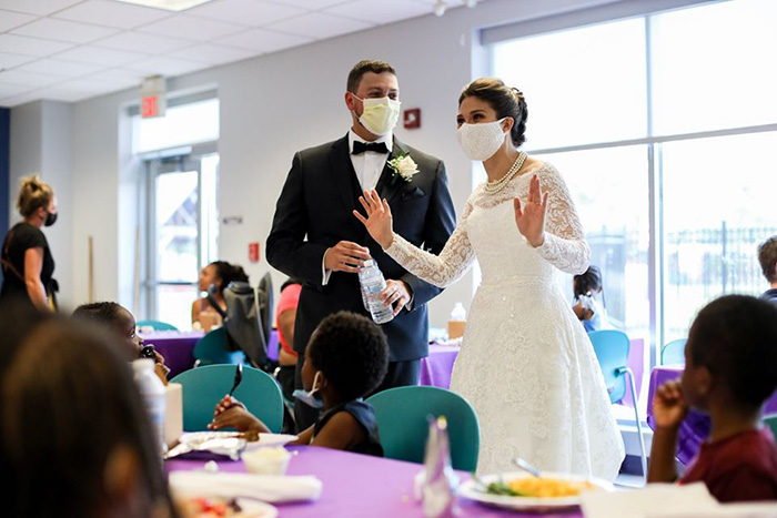 When an Ohio couple's wedding reception was canceled due to COVID-19, they decided they not only wanted to donate their reception food to a local homeless shelter, but also to serve the meals. Melanie and Tyler Tapajna had already paid the caterer, so the couple took all the food to Laura's Home Women's Crisis Center in Cleveland. The couple's wedding menu included fried chicken, green beans, salad and mac and cheese. More than 130 women and children were able to enjoy the meal, thanks to the newlyweds. We pray this amazing couple is blessed immensely in their marriage, and thank them for inviting our guests to their wedding feast," the City Mission wrote on their official Facebook page.