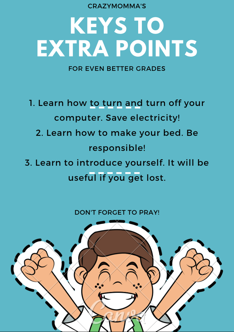 August 3, 2020 (Monday, GCQ) Dear Diary, Today is the fourth day of homeschooling for my seven-year-old son. He slept for 12 hours overnight. He slept at 9:30 pm last night and woke up at 9:30 am this morning. As I was waiting for him to wake up, I ate breakfast at 8:30 am then I felt unwell by the time he woke up so I let him do whatever he wants such as watching TV, playing mobile games, and playing with his toys. But before he did all these things, he made the bed right after he woke up, like it was already a habit. Even though I felt unwell, I made sure to let him eat breakfast. At 1:30 pm, I finally felt well enough to review my entries from July 31, and I discovered some interesting trends that I could be proud of: - I taught him how to operate his computer on day one and he was already independent about it on day two! :D - I introduced the habit of making the bed to him on day one; I facilitated it on day two, and he was already voluntarily doing it by day three! Today it was automatic. :D - I helped him practice self-introduction on day one and he spent 40 minutes just to get it done; he used half the time on day two while glancing on his notes from time to time, and he was able to do it in just five minutes without looking at his notes on day three! :D - His first spelling quizzes in English involved simple words. His next quiz involved compound words and he did well. :D I just reintroduced Lupang Hinirang to him on day three. I wonder how long it will take him to master it. We officially started our lessons at 2:48 pm by praying for three minutes and checking the date today for 2 minutes. We proceeded to discuss the weather in Science for 26 minutes and he asked to play the weather song five times! He really liked it! He asked to do it again tomorrow. Since we were trying for him to master Lupang Hinirang as our national anthem, we practiced again today. It took us 6 minutes for three repetitions or 2 minutes per song practice. We agreed to do it again tomorrow. Our next topic is arts and he tried drawing a ninja while watching Art for Kids Hub on YouTube. This took 18 minutes. And I just realized today that these art sessions could give me time to multitask as it keeps my son busy and his attention focused on the art lesson. I collected the laundry from the clothesline. It’s another win. He also asked me to draw my own ninja, to which I gave in. It took me 4 minutes. He was so enthusiastic about it. :D We moved on to MAPEH by singing the Bahay Kubo song. It introduces good music to sing along to, information on healthy veggies and we also got to clap hands to the tune. He was feeling happy. He also questioned some abbreviated words which I patiently discussed. We played the song thrice. It took us 9 minutes to do this. My son went ahead and browsed the next topic. When he found out that it was Pagbabaybay at Pagbabasa in Filipino, he expressed disappointment. As usual, he was hesitant with reading and spelling tasks. He was loud and rambunctious. I tried to be patient and watched as he unwillingly does the task. I then thought about how I could get through this exercise with him without losing my patience. Then I thought about folding the laundry, which I collected earlier, as I wait for him to complete the exercise. It took him 20 minutes to finish the drill. The quiz lasted for 7 minutes and he got 8 out of 10. Our last subject for today is Other Languages: Nihonggo. He breezed through Level 1 and decided to try Level 2. He found Level 2 difficult so he decided to practice and study before taking on Level 2 again. I was glad to hear that he wanted to study so he could beat Level 2. That was really a bonus to elicit from him a voluntary decision to study more. Since he was really into the Nihonggo lessons, I was able to continue folding our laundry. But as I was about to finish folding the laundry, he asked that I join him in answering the next quiz. We got into a bit of horse-playing as I was teaching him some Japanese words and he got hurt by accidentally folding his pinky finger backward. He cried but he quickly forgot his painful pinky as he continued the quiz. Now, there are benefits to him hurting his finger during horseplay: - he would learn first-hand that horse-playing could cause him harm - he will be able to remember what he was studying then in relation to the memory of pain. True enough, when the item came up in the quiz and he couldn’t answer, I just needed to remind him that it was what we were trying to study when he hurt his pinky for him to know the answer to the question in the quiz. He spent one hour and 5 minutes for all of these. I have to say that he’s totally hooked up with this one! After all that we did today, I learned that I could multi-task every time we have Arts, Pagbabaybay, and Other Language as subjects. Anyway, today’s subjects included: - Computer - Science and Health - Civics, Culture, Geography, and History - Music, Arts, Physical Education and Health - Filipino (Pagbabaybay, Pagbabasa at Pagsusulat) - Other Languages: Nihonggo I finalized “his notes” for today and prepared the lesson for tomorrow in 55 minutes. That’s it for our fourth day! P.S. My son would keep on using his painful pinky to get affection from me or his father until the end of the day. It was funny yet heartwarming. I am not sure if it is still painful or not, but I know that he wants to be loved. So we just gave it to him.