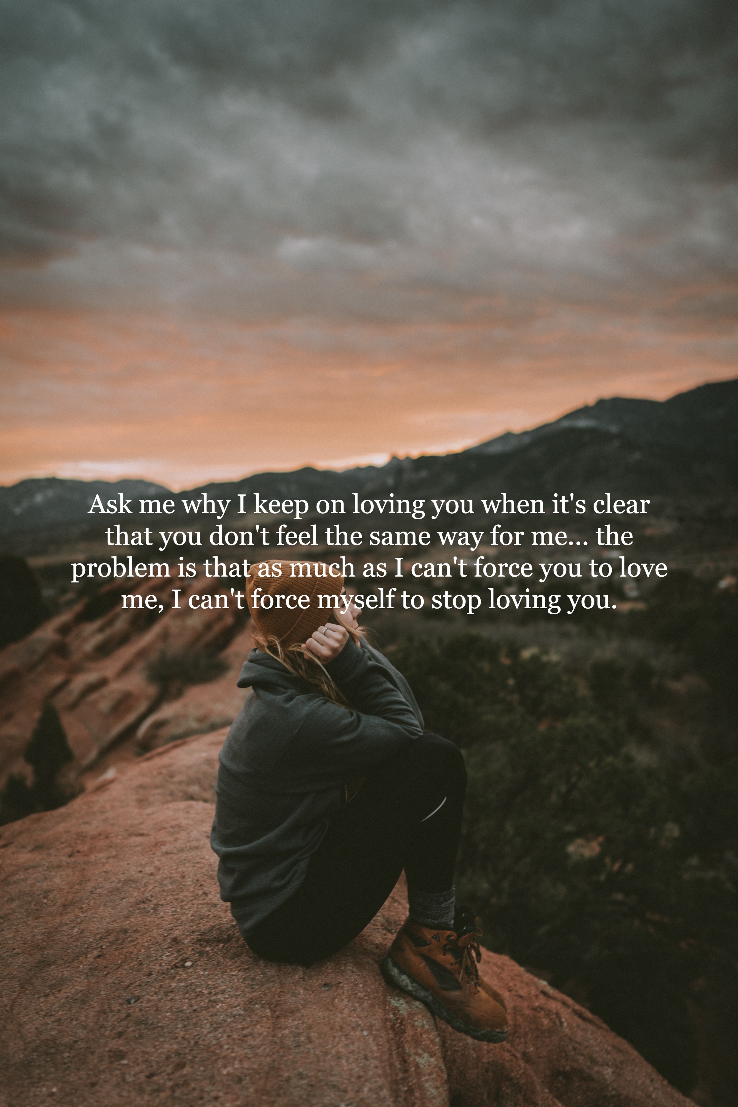 Ask me why I keep on loving you when it's clear that you don't feel the same way for me... The problem is that as much as I can't force you to love me, I can't force myself to stop loving you.