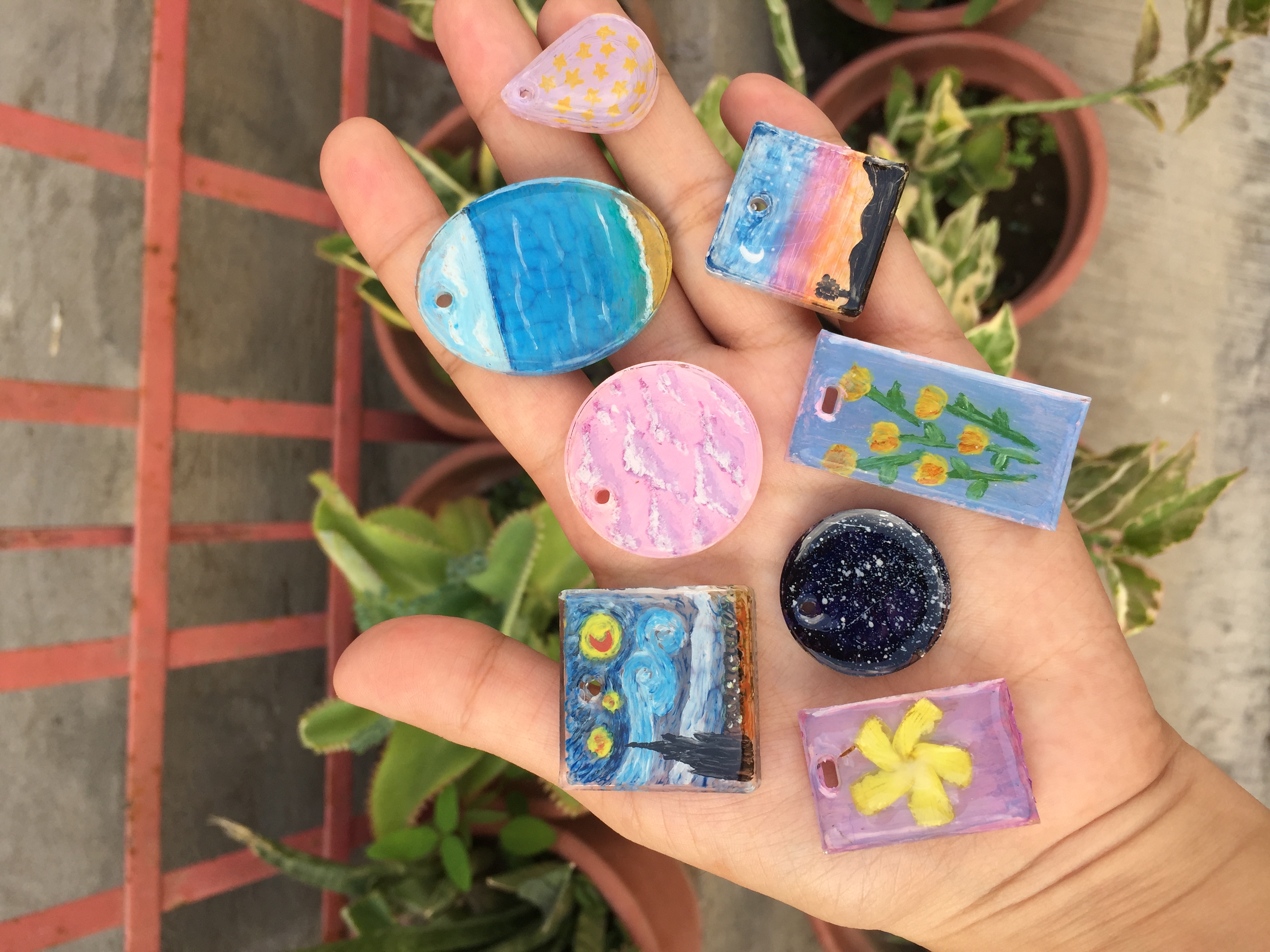 Handmade resin necklaces painted using acrylic paint š¤