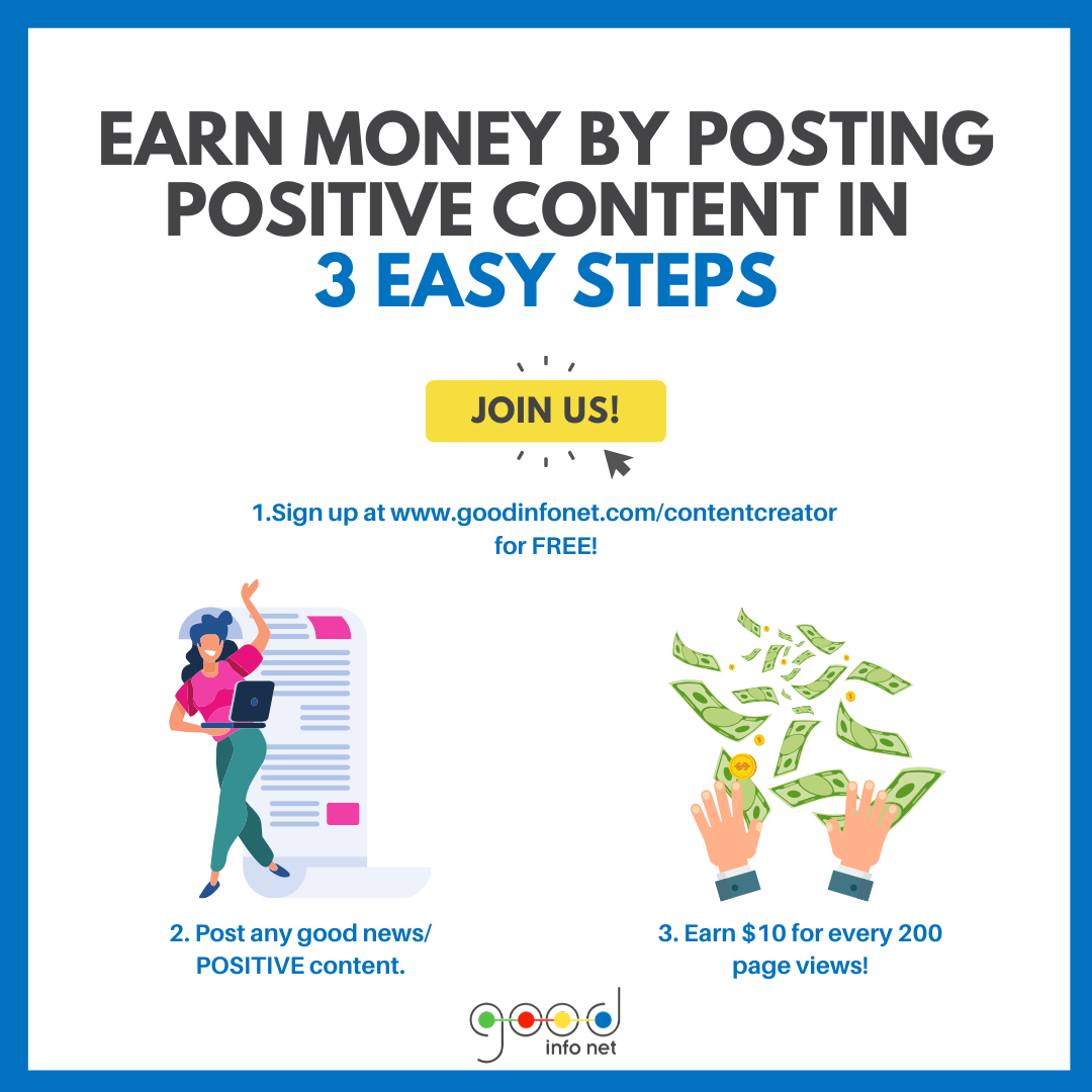 How to earn more here at Goodinfonet? Support each other! 1. View all my posts 2. Hit the high five button 3. Comment down below And we'll do the same with you! How To Earn As A Content Creator At GoodInfoNet Good Info Net is a haven of positivity. No profanity. No bashing. 100% good news! If you're a content creator who wants to make a positive impact on your community, Good Info Net is the right platform for you! Here's how you can earn money as a Good Info Net Content Creator... - Post any positive content on Good Info Net! It could be your dog, your family, your relationship... Literally, anything that you think can INSPIRE positivity. - Share your Good Info Net content across all your social media networks! - Earn based on the engagement! For Good Info Net posts that hit at least 200 page views for the last 7 days, content creators will earn at least $10 per post! The higher the page views, the higher the earnings! The program is still on the beta phase so we may encounter hiccups along the way. We continuously review page views and content every Monday so with that, we'll see which content creators will receive our weekly payouts via Paypal. Thank you so much for your overwhelming support! Happy Inspiring! ctto.