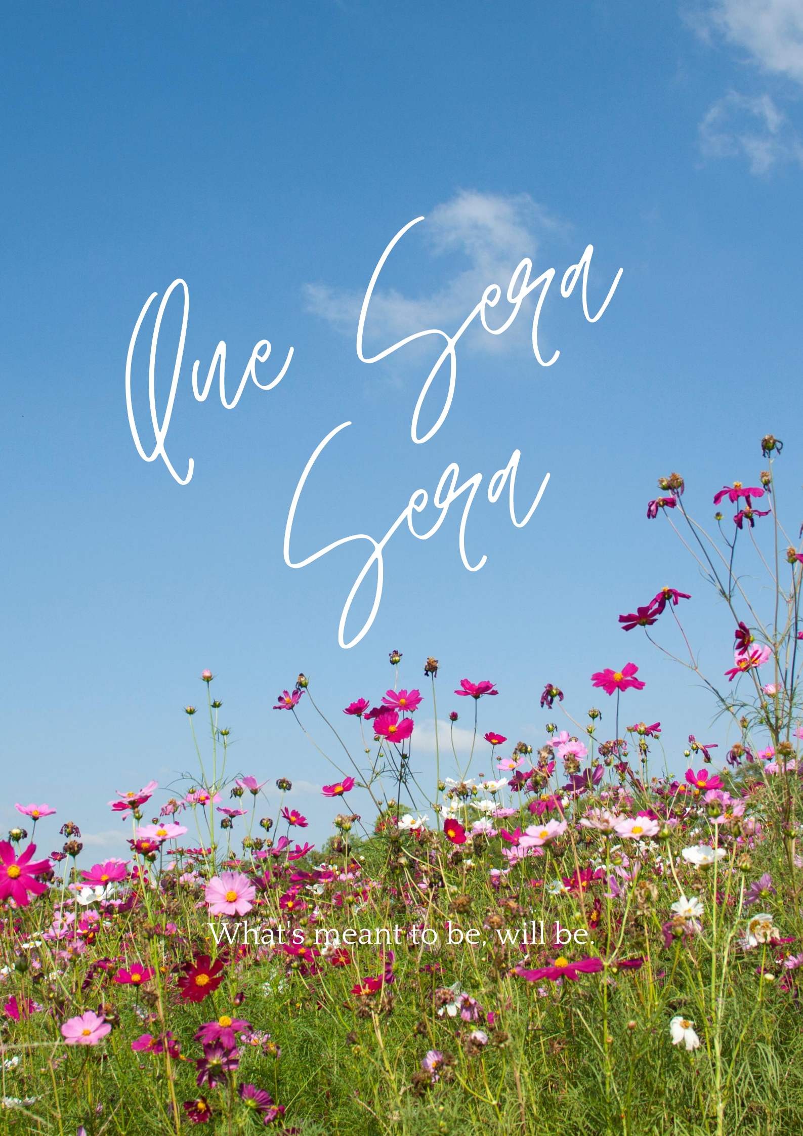Sometimes in life, we may never understand why certain things happen to us. Nevertheless, our mindset should always be like the quote above. Que Sera Sera. Whatever will be, will be. Whether you are troubled by the ongoing global pandemic or the financial burden it gave us, do not be anxious. Just focus on growing as an individual. Find a job that can help you make it through this crisis. And always remember, whatever happens, it is meant to happen that way. Don't stress too much. Just go with the flow. The world is round, you may be under right now, but one day, you will be at the top.