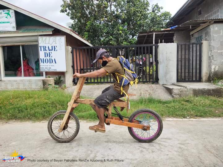 WOODEN BIKE, KINAGIGILIWAN NG NETIZENS. Namangha si Bayan Patroller RenZie Azucena sa namataan niyang bisikletang gawa sa kahoy sa Guimaras. Kuwento ng gumawa ng bisikleta na si Jannifer Cabaya, 32 anyos mula Brgy. Banban, Buenavista, Guimaras, matagal na niyang gustong magkaroon ng bisikleta pero wala siyang pambili nito. Dagdag niya, hiningi niya ang mga materyales at pinagtiyagaan niyang ikumpuni ang wooden bike. Ang gulong din aniya sa harapan ay hiram lang.
